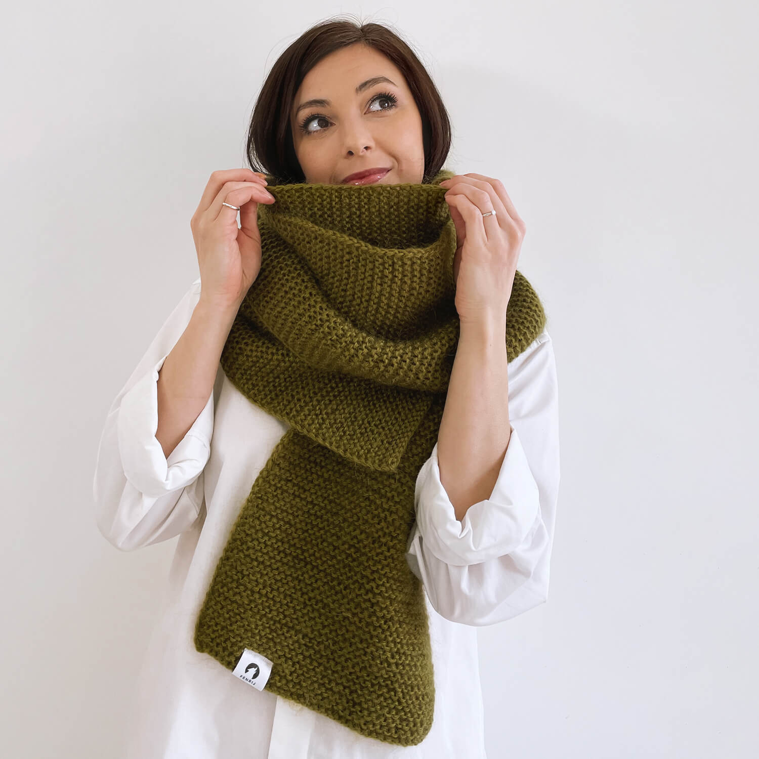 Dank des Mohair-Anteils hält dich dieser Oversize Schal definitiv immer warm. Und die Farbe erst! Das warme Olivgrün steht praktischem jedem – ein XXL Schal für Damen und Herren und darüber hinaus. Dabei passt das schicke schlichte Strickmuster auch noch zu jedem Outfit. Egal ob du casual spazieren oder formell ins Homeoffice gehst – Stijn ist immer die richtige Wahl.